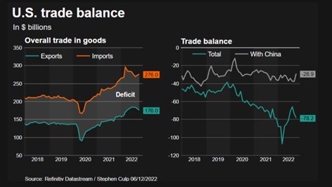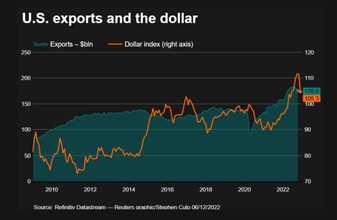 📌АНУ-ын экспорт буурахад дараах хоёр хүчин зүйлийг шинжээчид онцолж байна. Үүнд, ам.долларын ханшийн өсөлт тус улсын экспортын бүтээгдэхүүний дэлхийн зах зээлд өрсөлдөх чадварыг сулруулж байгаа бол дэлхийн бусад улс орнуудын төв банкнаас баримталж буй мөнгөний хатуу бодлого барааны эрэлтийг бууруулж байгаа юм.