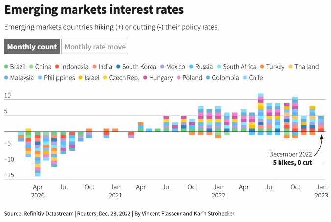 АНУ болон бусад томоохон улс орнууд бодлогын хүүгийн өсөлтөө удаашруулж эхэлж байгаа бөгөөд ингэснээр 2023 онд хөгжиж буй зах зээлүүд эргэн сэргэх боломжтой болж байна. Харин хөгжиж буй орнуудын төв банкнууд энэ жил зээлийн хүүгээ бууруулж чадахгүй бол эдийн засгийн сэргэлт удаашрах магадлал өндөр байгаа юм.
