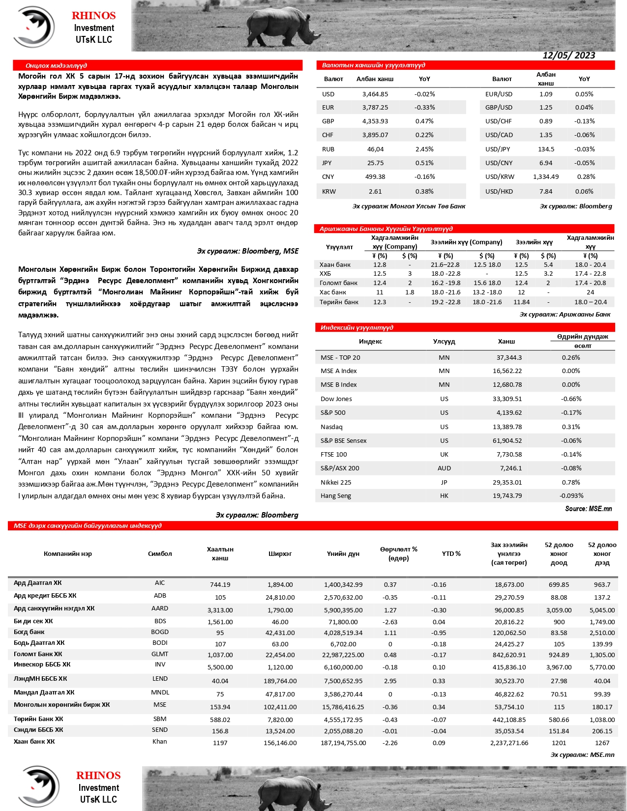 Монголын энэ долоо хоногийн макро эдийн засгийн тойм /Mongolian Weekly Economic Updates/ (2023/05/12)